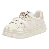 天美意女休闲鞋系带厚底运动小个子女板鞋百搭女鞋2025春