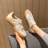 ZHR休闲鞋女舒适平底女鞋经典复古拼接德训鞋女韩版时尚运动风鞋子女AT70 米灰 36