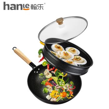 翰乐 麦饭石不粘炒锅+蒸笼 送铲子 电磁炉煤气灶通用HL-T08飘香甄品