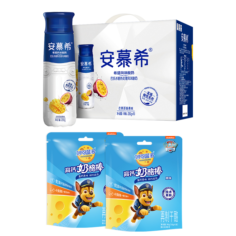 安慕希高端畅饮型酸奶芒果+百香果230g*10盒 妙可蓝多奶酪棒高钙原味18g*5支*2袋